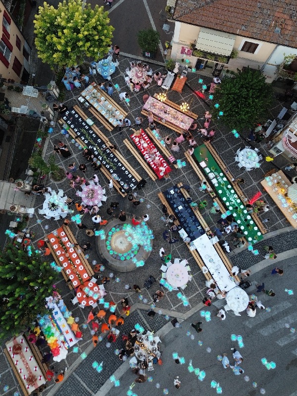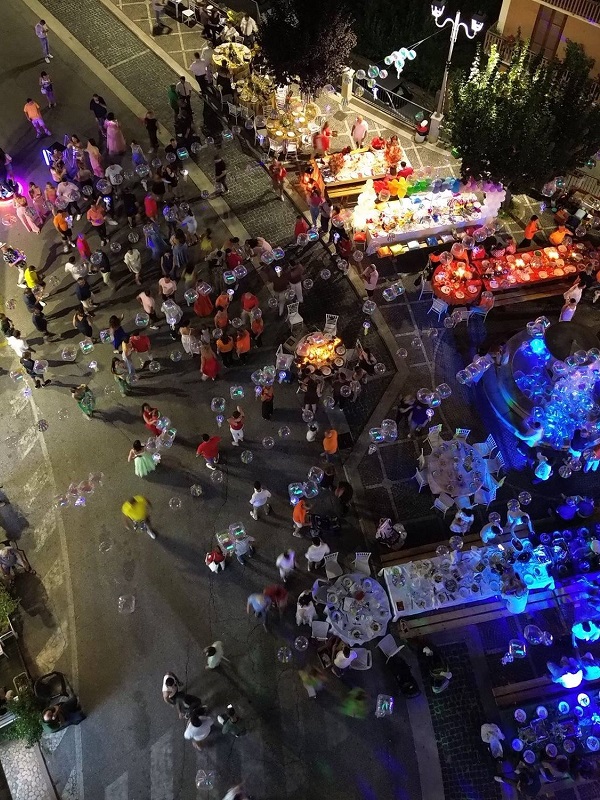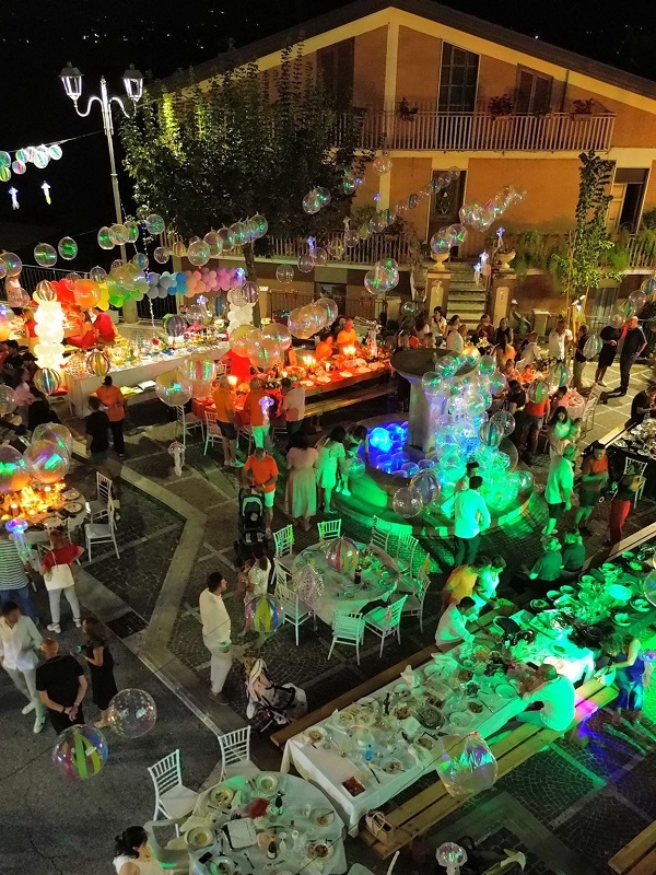 Un tripudio di colori, una Piazza Elena come non l'avevamo mai vista prima, gremita di persone e vestita a festa per la terza edizione di Cenando sotto le stelle cadenti.